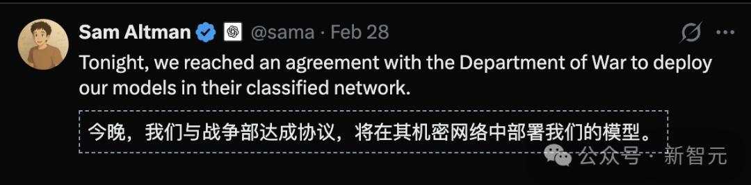 昨日,奥特曼宣布与美国国防部(现更名为Department of War,即战争部,DoW)达成合作。