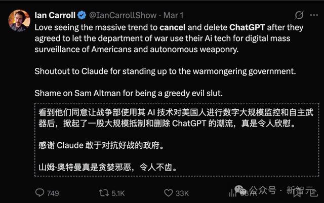 对比之下,OpenAI相当无耻,美国自发掀起卸载/取消ChatGPT运动,声势浩大,人声鼎沸!