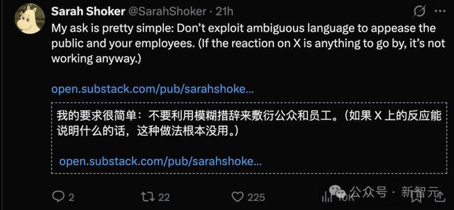 这次她要追问的很简单:OpenAI请不要含糊其辞,从而敷衍大家和员工。