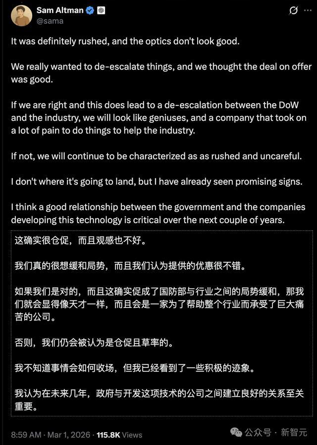 OpenAI先是公布合作详情,试图挽回口碑,奈何民意汹涌,奥特曼等OpenAI高管在线实时回答相关问题,6百多万网友围观: