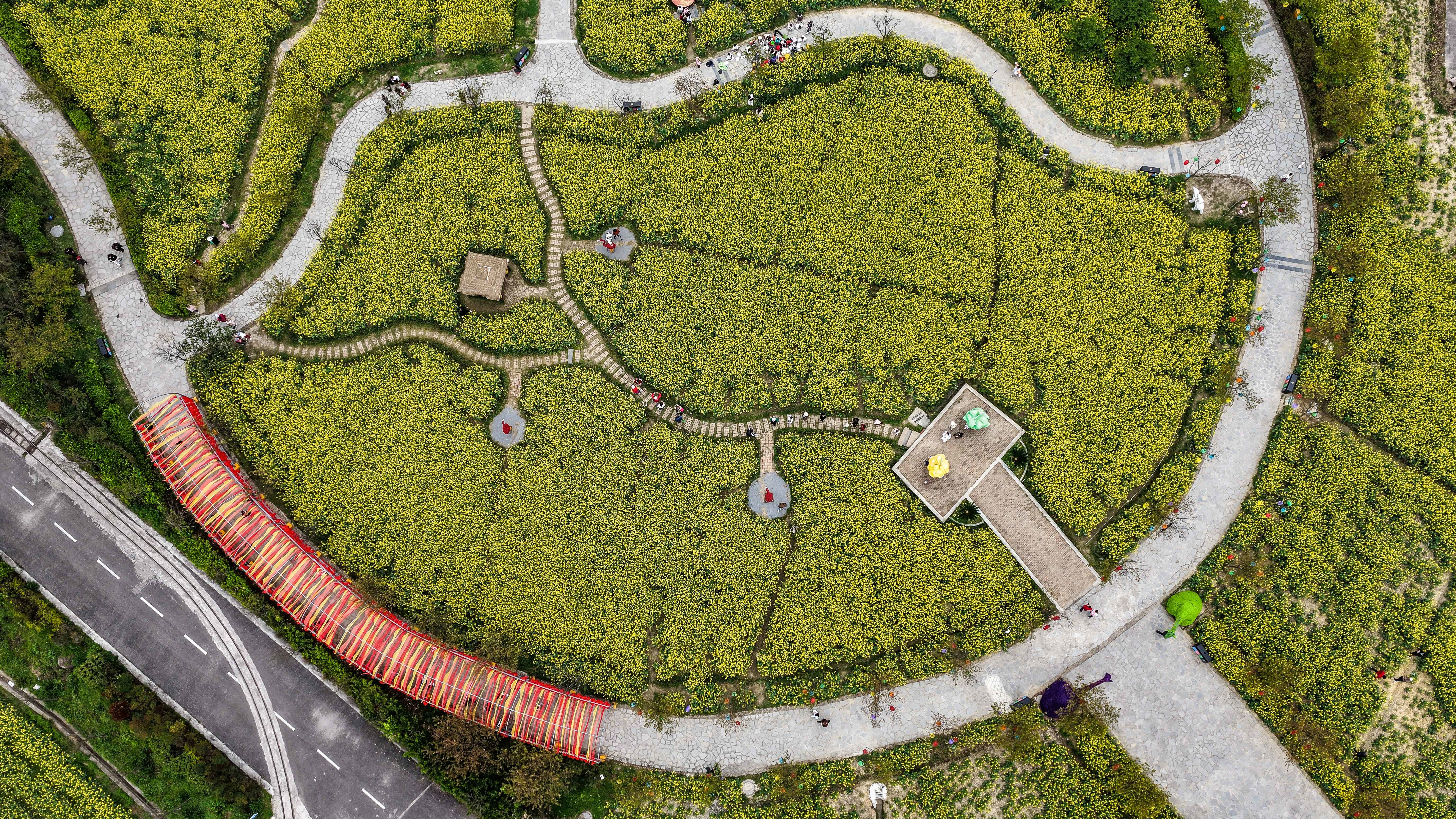 这是3月13日拍摄的贵州省贵定县盘江镇“金海雪山”景区内的油菜花田(无人机照片)。新华社记者 陶亮 摄